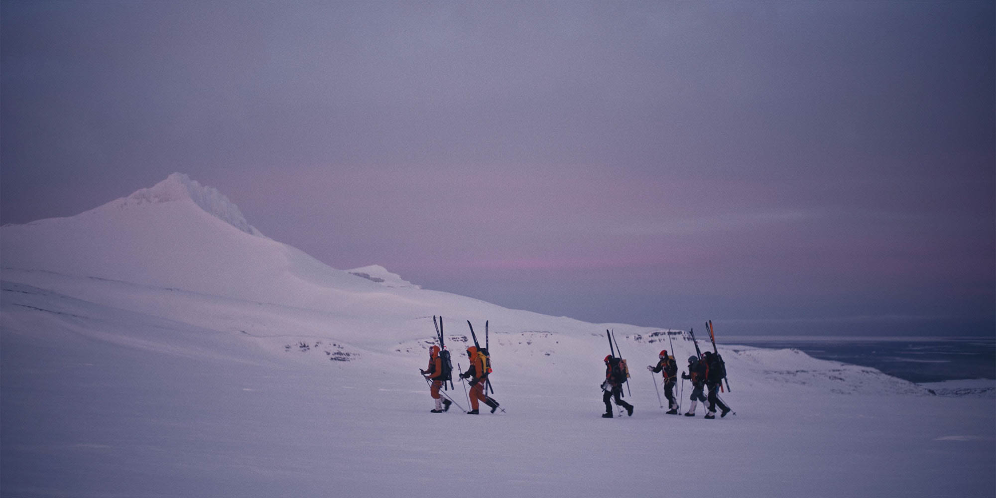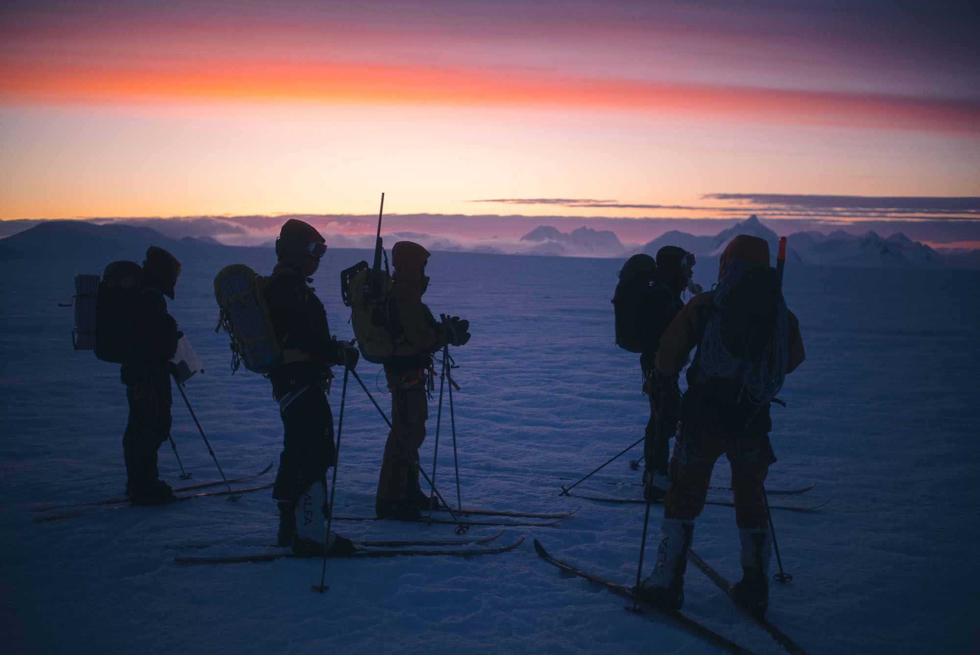 After crossing the main road one last time, our group headed into the wilderness of Svalbard on snakelike paths through gigantic mountain ranges and over frozen fjords. This surreal scenery will be our home for the next 40 days.