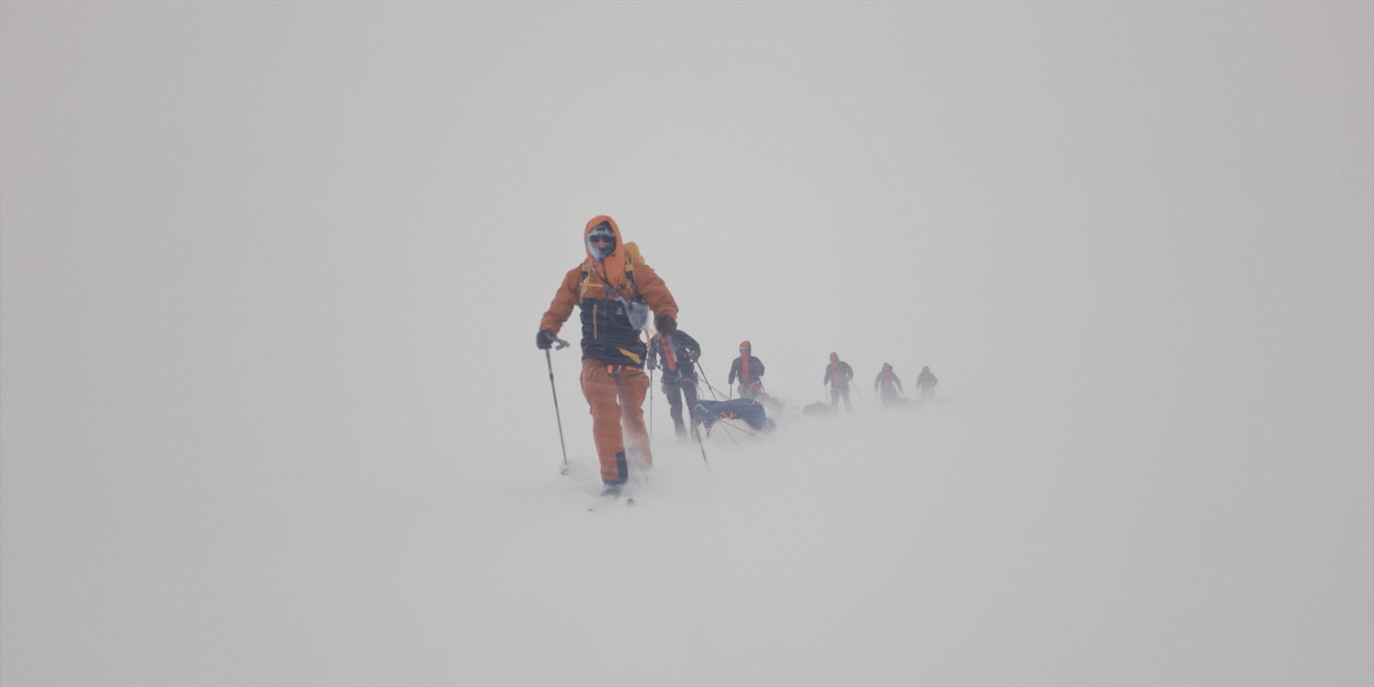 And after two nights under the snow, all seven of us crawled out of the hole into the blinding light of a new day and — as if time had stood still — started packing our pulks and kept going south.