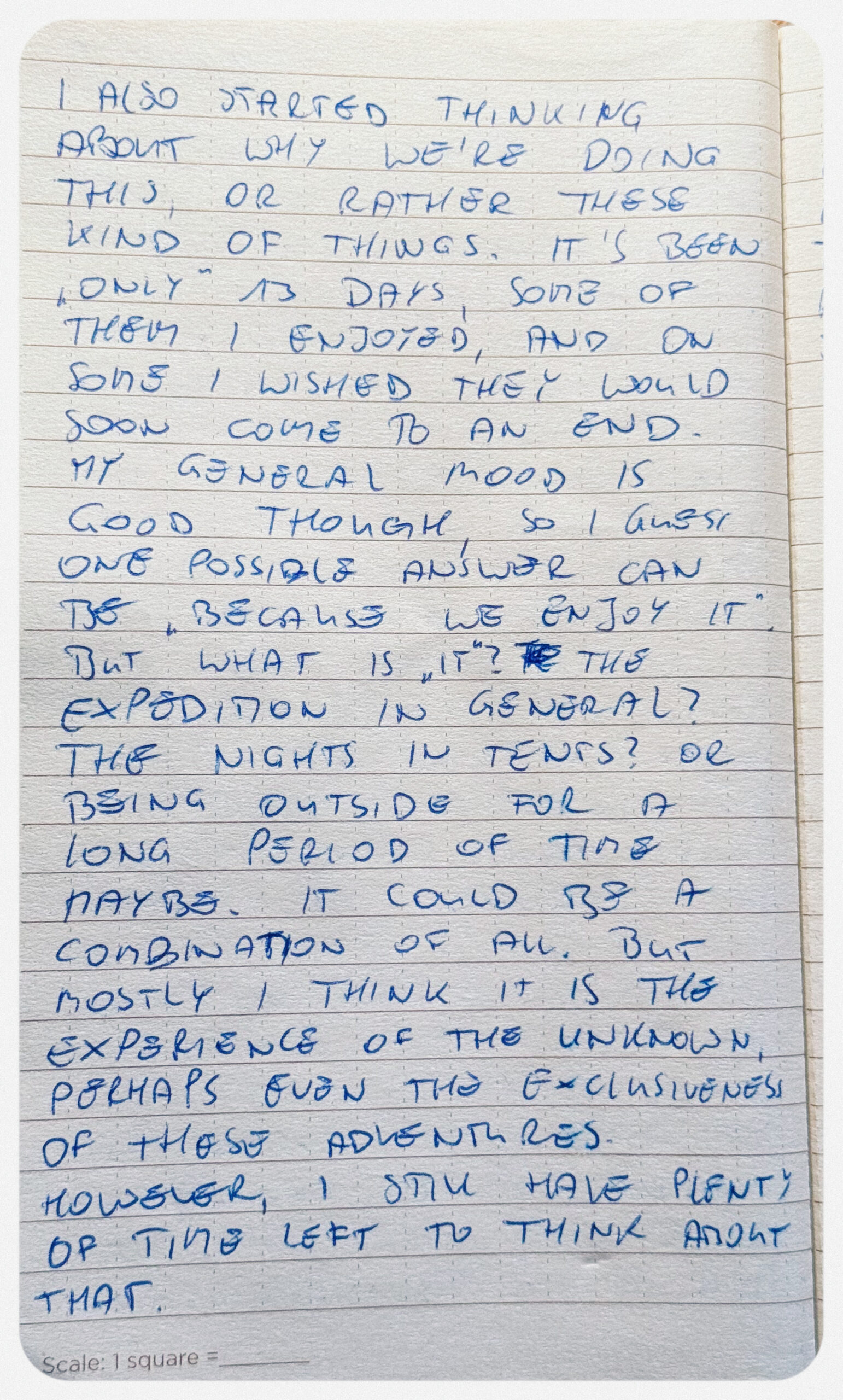 I also started thinking about why we’re doing this, or rather these kinds of things. [...] mostly I think it is the experience of the unknown, perhaps even the exclusiveness of these adventures.